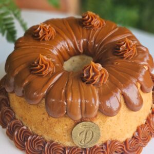 Bolo de tapioca e cobertura cremosa de doce de leite