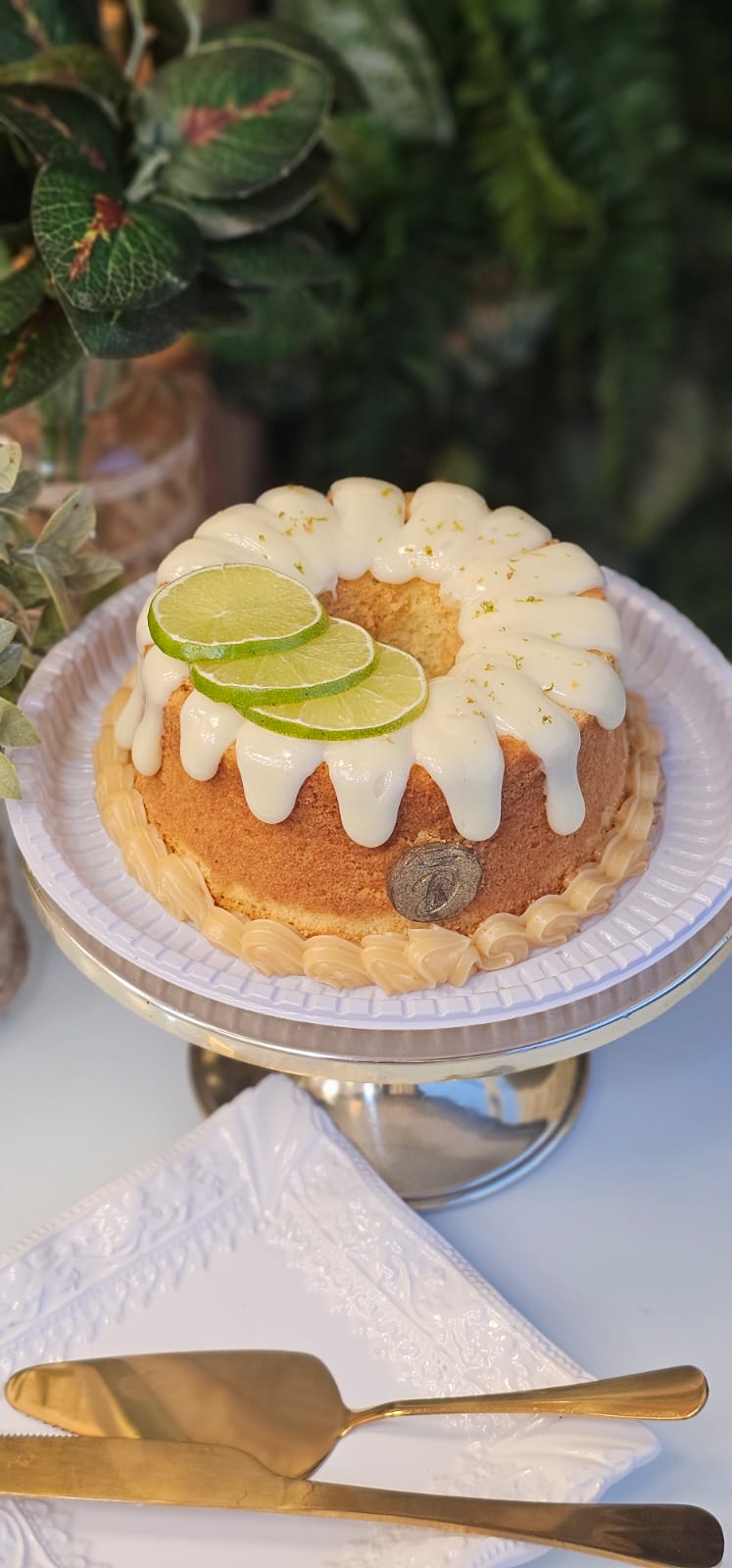 Massa branca e cobertura de Limão, finalizados com raspas de limão.
