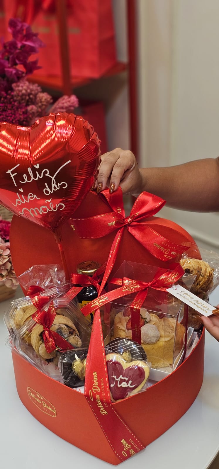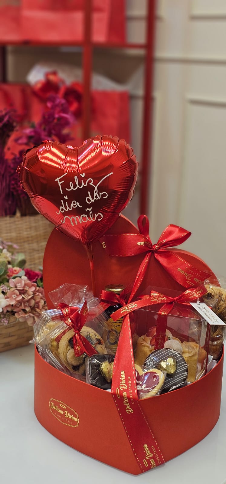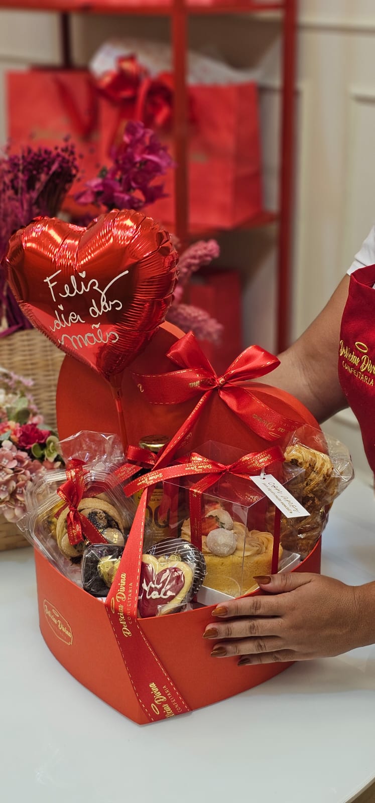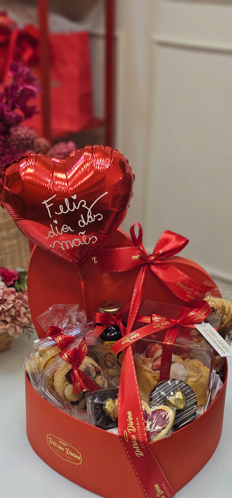Um presente doce, afetivo e cheio de significado. Ideal para mães que amam um bom café da tarde com muito sabor e carinho em cada detalhe. Acompanha caixa cartonada vermelha em formato de coração, reutilizável, com acabamento em laço e tag.