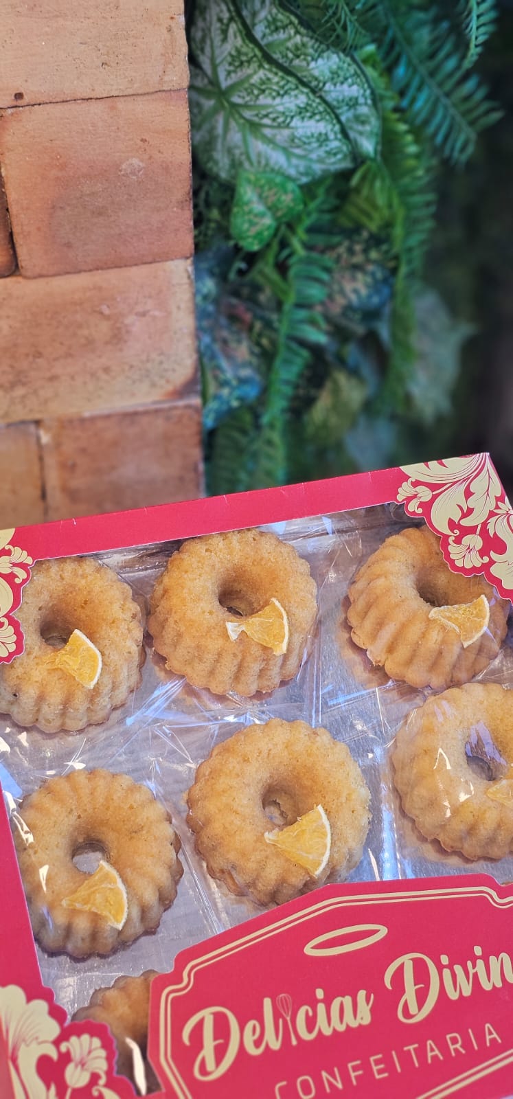 Kit composto por 10 unidades de Mini bolos de laranja humidecidos com calda especial da casa.