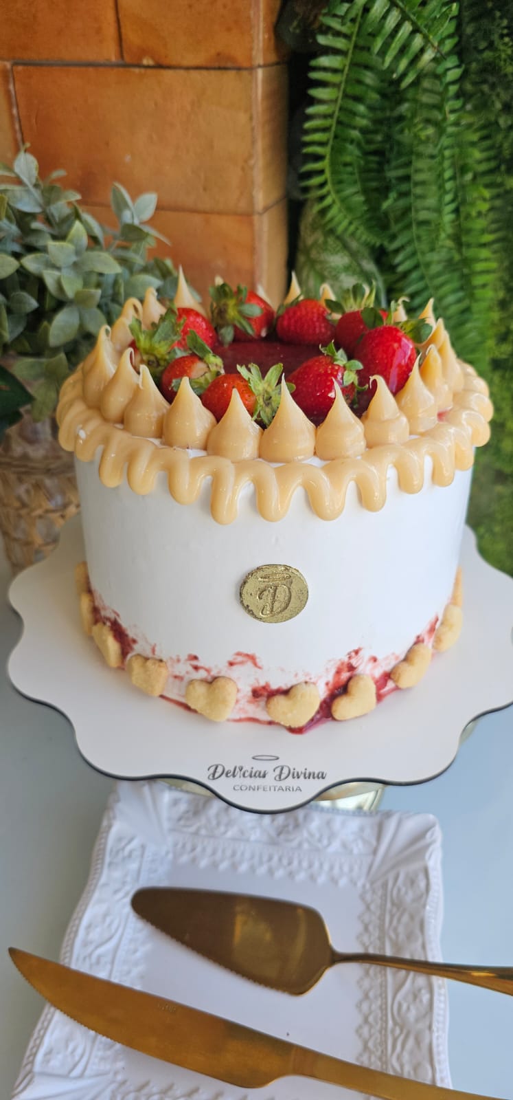 TORTA DE MASSA BRANCA, RECHEIO DE NINHO COM GELEIA DE MORANGO ARTESANAL E PEDAÇOS DE SEQUILHOS, FINALIZADA COM COBERTURA DE CHANTILY GELEIA ARTESANAL DE MORANGO, MORANGOS E SEQUILHOS.